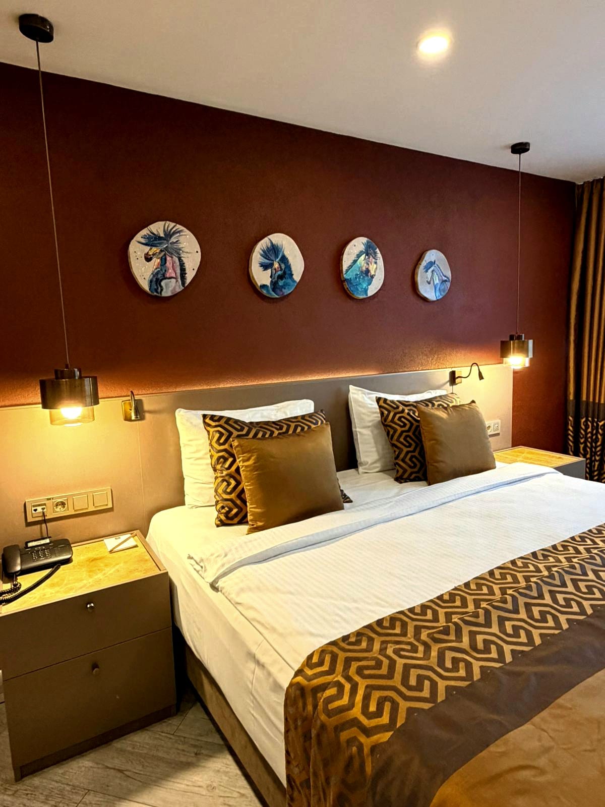 Superior Double Room with Hammam designed in a refined style with an artist’s touch and finished with high-quality all-natural materials. This rooms have 1 King bed with seating area. The size of the room is 31m².